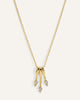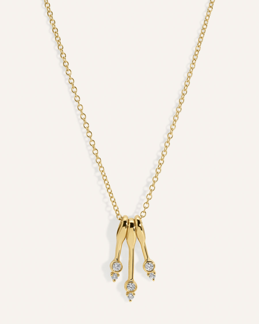Simple meets edgy in this pendant necklace. 0.08tcw, SI clarity, G-H color round brilliant Diamonds are set across three dangling linear pendants. A combination of bezel and three-prong settings create a play on shapes.